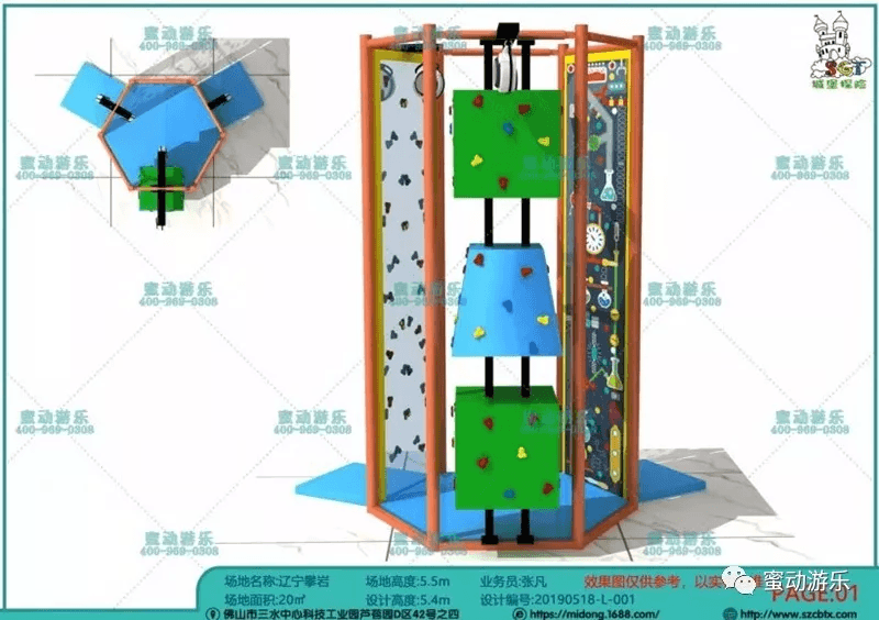 我司設計推出的趣味攀巖項目,把攀巖支點與巖壁進行高度的結合,將攀巖支點毫無違和地融入到巖壁的場景當中。攀巖項目中有齒輪元素、童話城堡元素、木梯元素、科學實驗元素等等,為攀巖設備增加趣味性。此外,攀巖設備可供兩到三人同時體驗,玩家可以來場力量與膽量的PK。