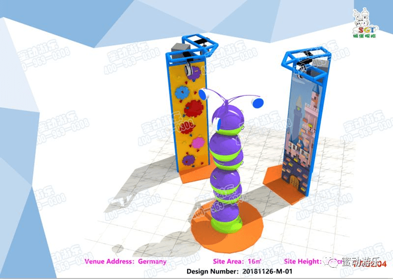 除了普通模式的攀巖墻,我司還創(chuàng)新研發(fā)設計推出了新型趣味攀巖項目。設備造型新穎獨特,球狀體錯位“疊羅漢”的設計和頂部“天線”般的設計,猶如昆蟲的觸角,整個設備猶如一只又一只呆萌可愛的昆蟲進行疊羅漢,為攀巖增加不少趣味性。