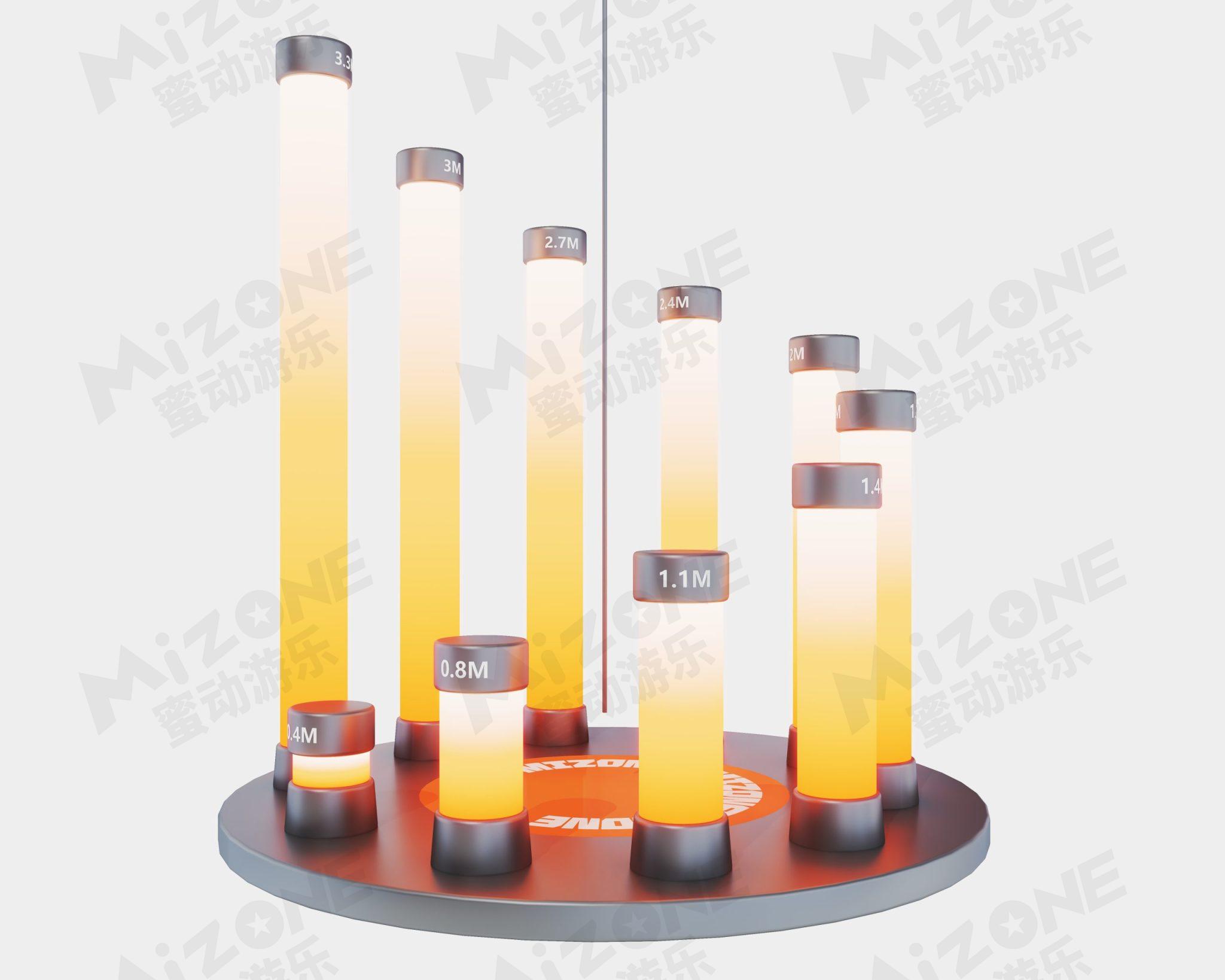 流光溢彩的霓虹光柱設計讓步步高梅花樁更具視覺誘惑,告別了同類梅花樁項目呆板缺少趣味的印象極具高性價比的單品網(wǎng)紅小項目。
