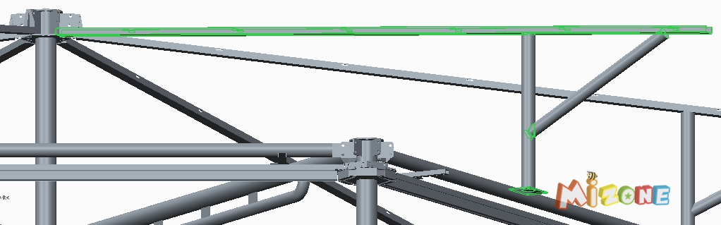 步驟六:右側(cè)傘面固定(需使用橫梯+木踏板, M10螺栓固定),見圖