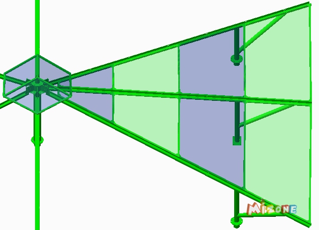 步驟四:斜桿二固定(需使用橫梯,中心桿處M16螺栓固定,橫桿處抱箍固定),見圖