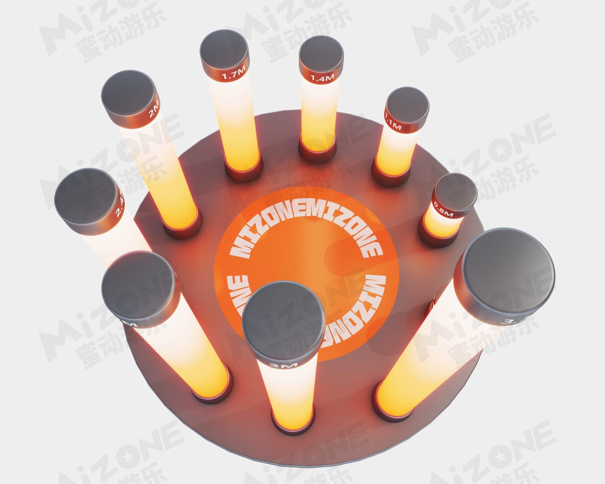 流光溢彩的霓虹光柱設計讓步步高梅花樁更具視覺誘惑,告別了同類梅花樁項目呆板缺少趣味的印象極具高性價比的單品網(wǎng)紅小項目。