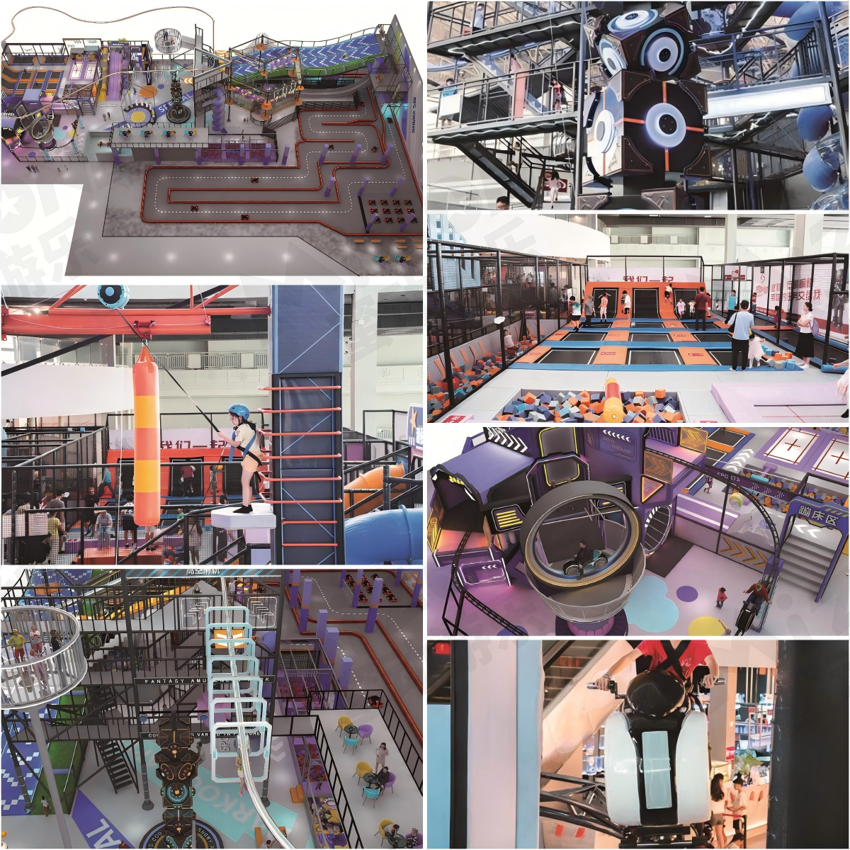 場(chǎng)館內(nèi)炫酷燈光營(yíng)造未來感,魔方攀巖挑戰(zhàn)智勇;高空拓展云端漫步,觀景臺(tái)凌絕頂。360度自行車飛躍,光輪摩托追風(fēng),空中飛人驚艷連連。彩虹步步高挑戰(zhàn)極限,蹦床釋放活力無限。高空秋千自由飛,旱雪滑梯速降爽,飛流直下失重狂??ǘ≤囐惖擂Z鳴,速度與激情同在。