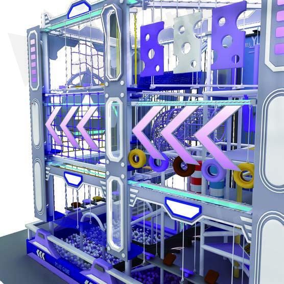 踏入紫色幻境,勇者在紫色天際翱翔,紫色隧道連接上下樓層,仿佛穿越時空?;萑顼L(fēng),帶你體驗飛馳的樂趣,紫藍(lán)攀巖區(qū)則是勇氣與美的舞臺。紫色科技與運動激情碰撞,等你來探索這場炫酷盛宴!